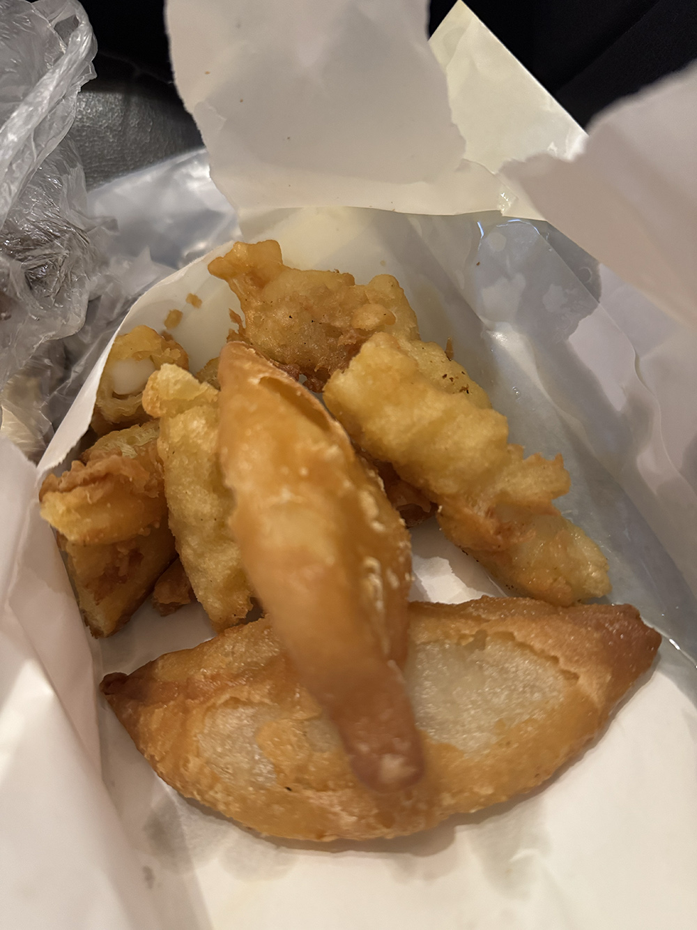저는 야끼만두 2개에 오징어튀김 하나 시켰는데,