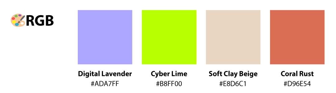 - 뉴트럴+포인트 구성: Soft beige 또는 gray 계열을 기본으로, 디지털 라벤더나 코랄 러스트를 포인트로 사용